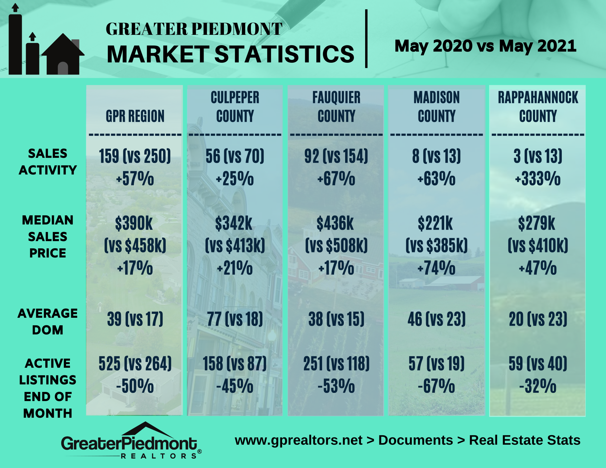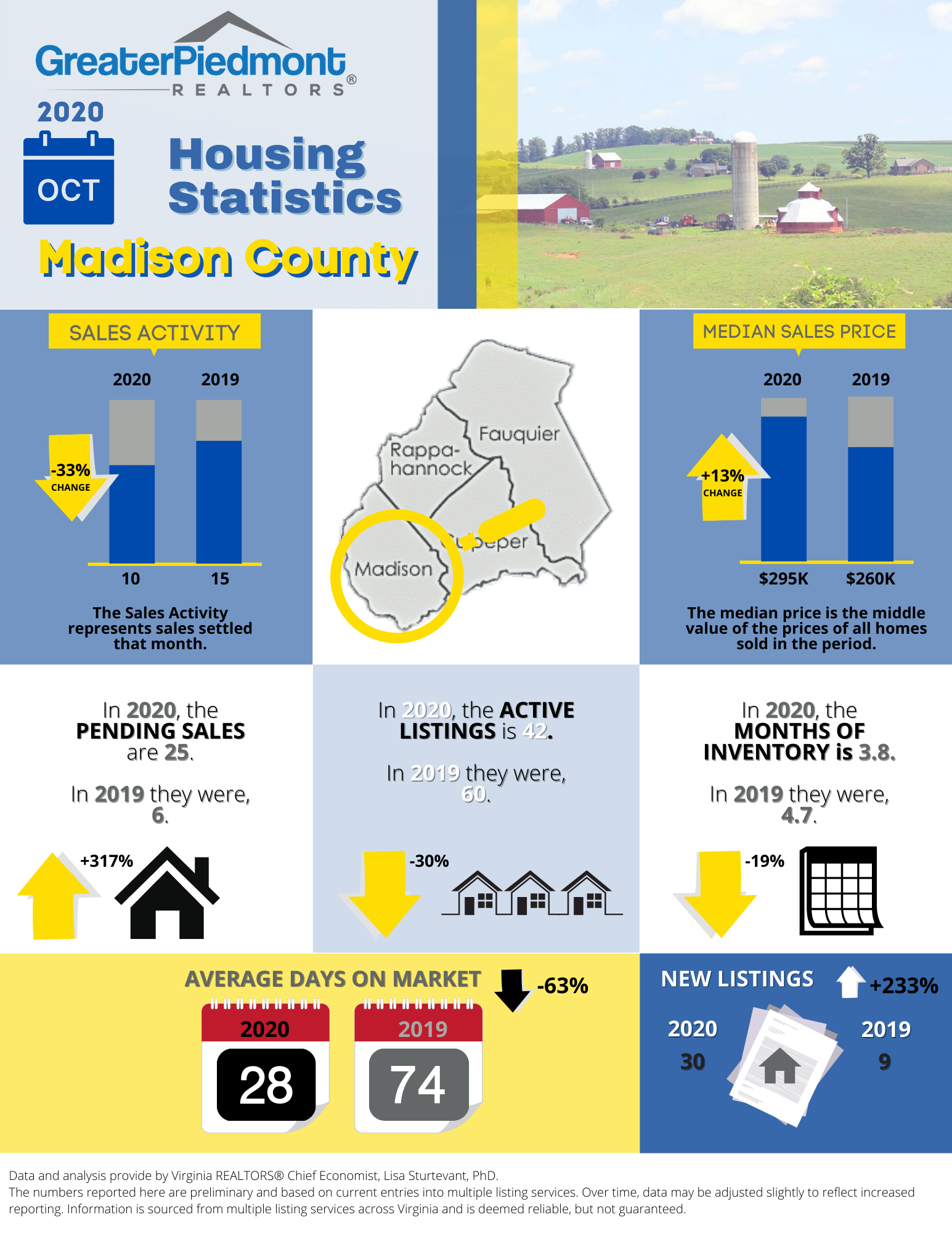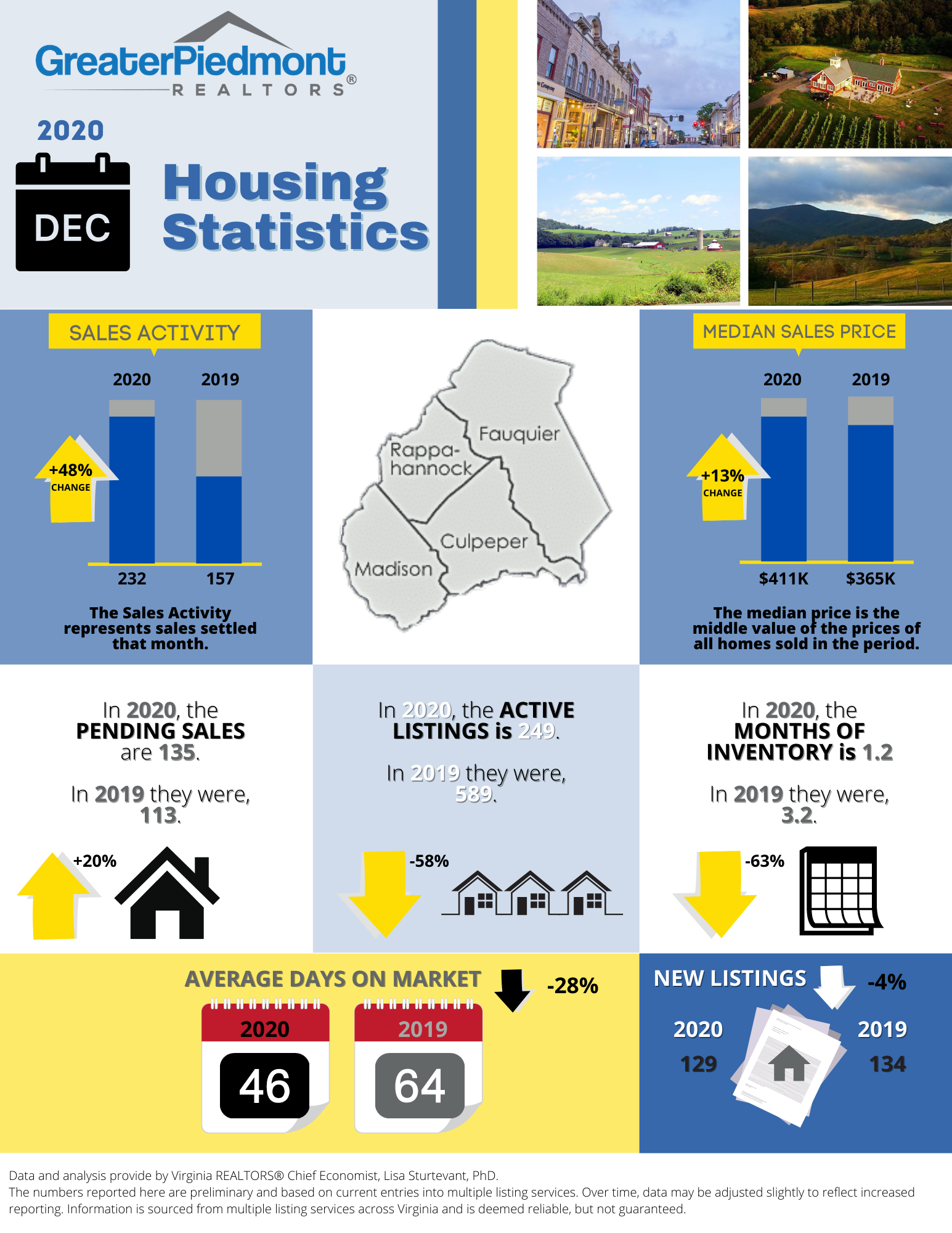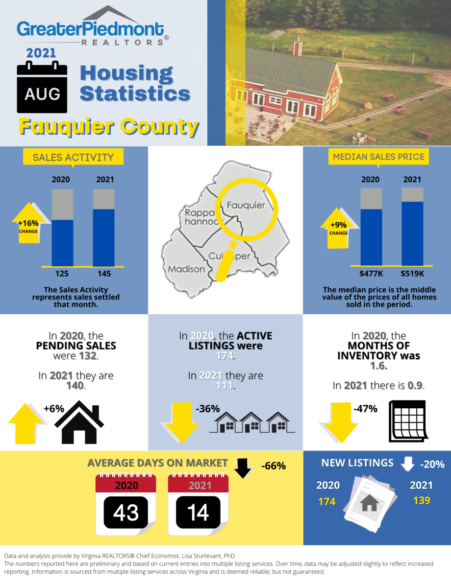 The Greater Piedmont REALTORS® reports on the sales activities for the counties of Culpeper, Fauquier, Madison and Rappahannock.