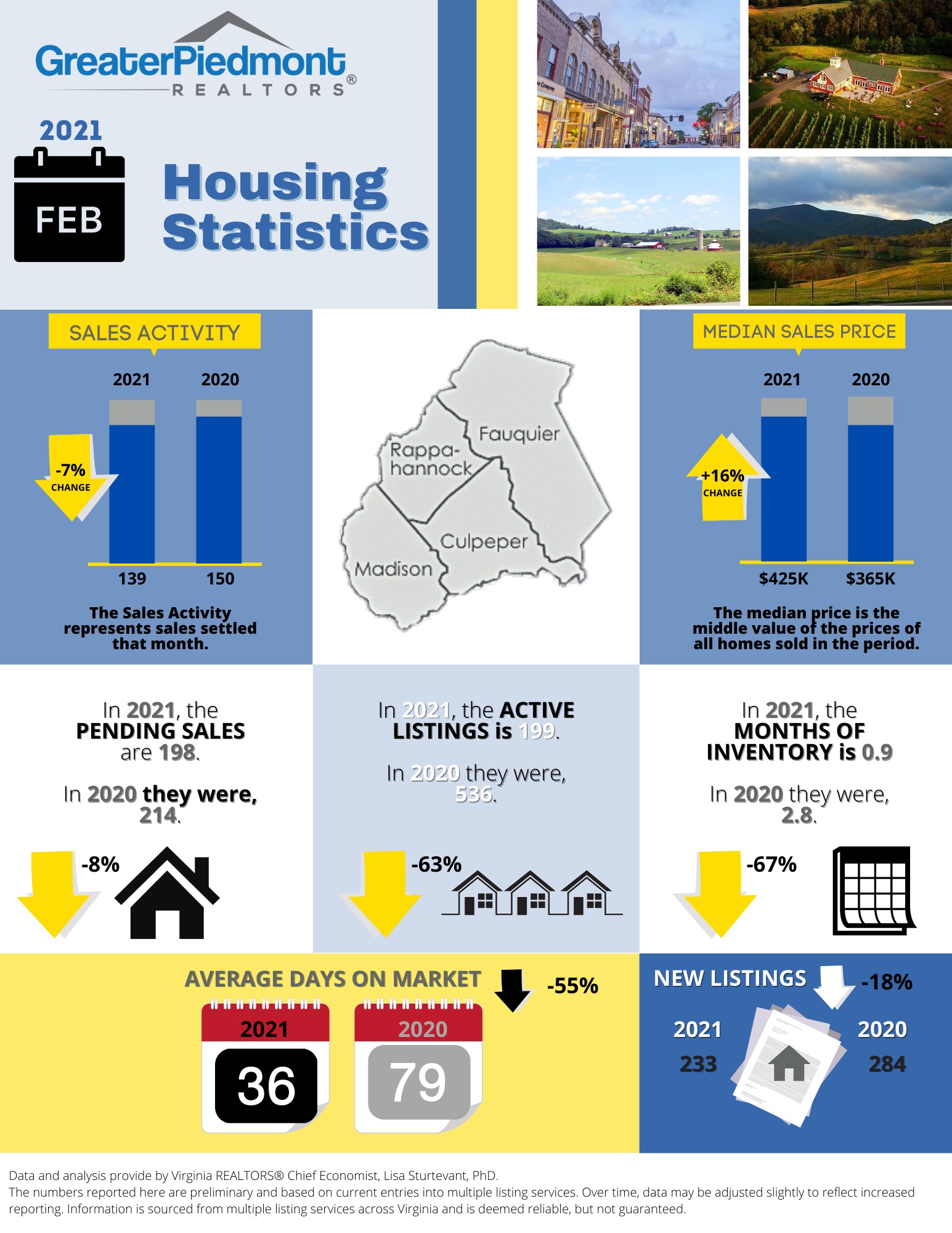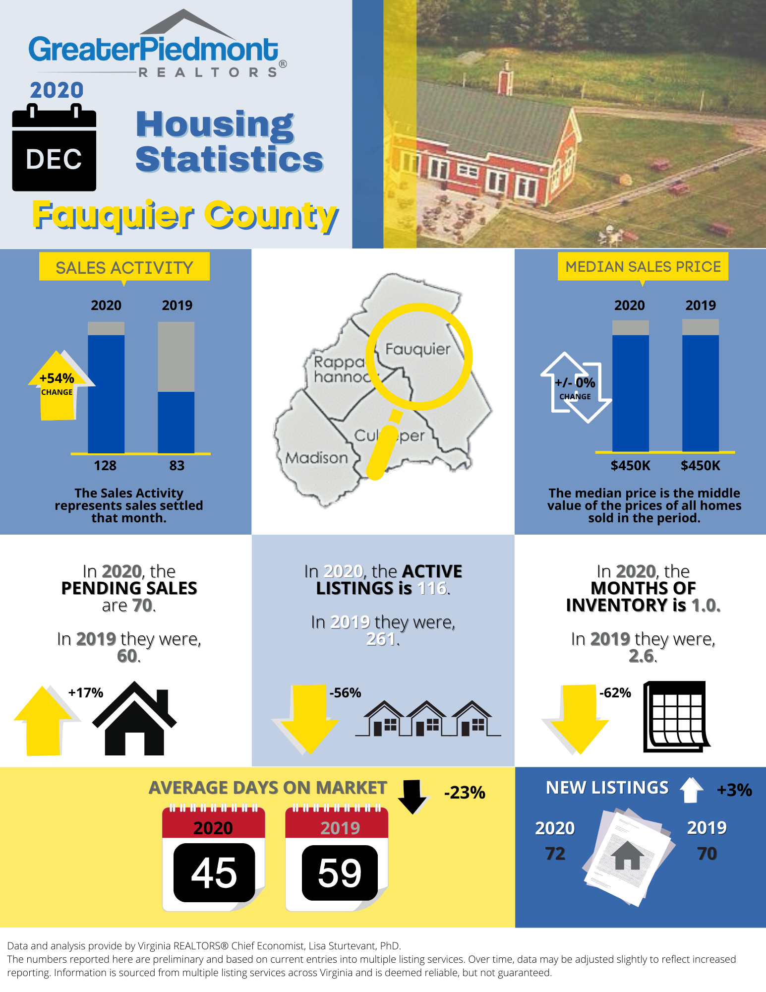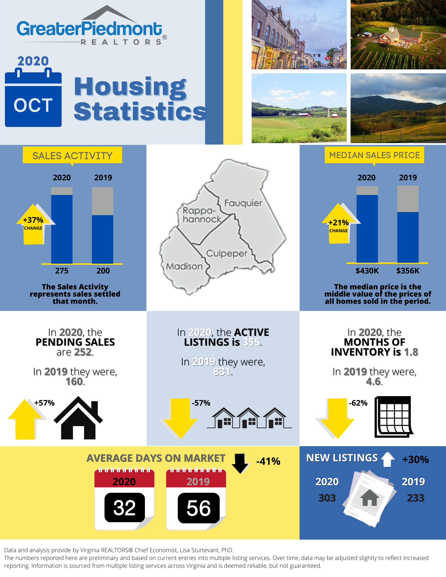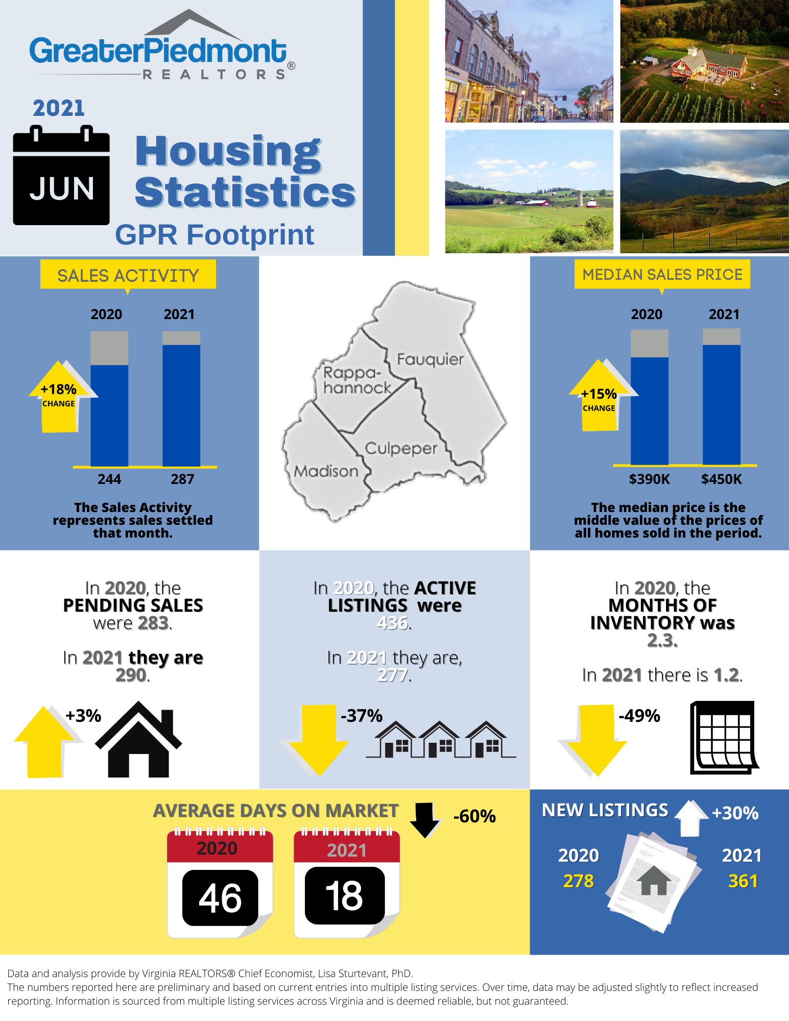 The Greater Piedmont REALTORS® reports on the sales activities for the counties of Culpeper, Fauquier, Madison and Rappahannock.