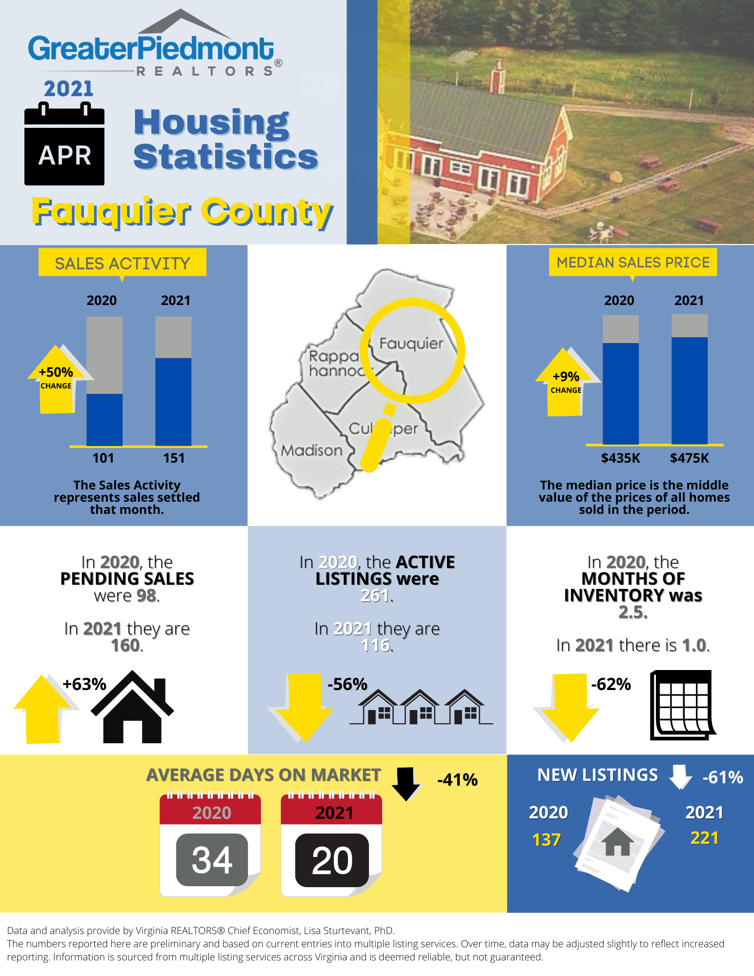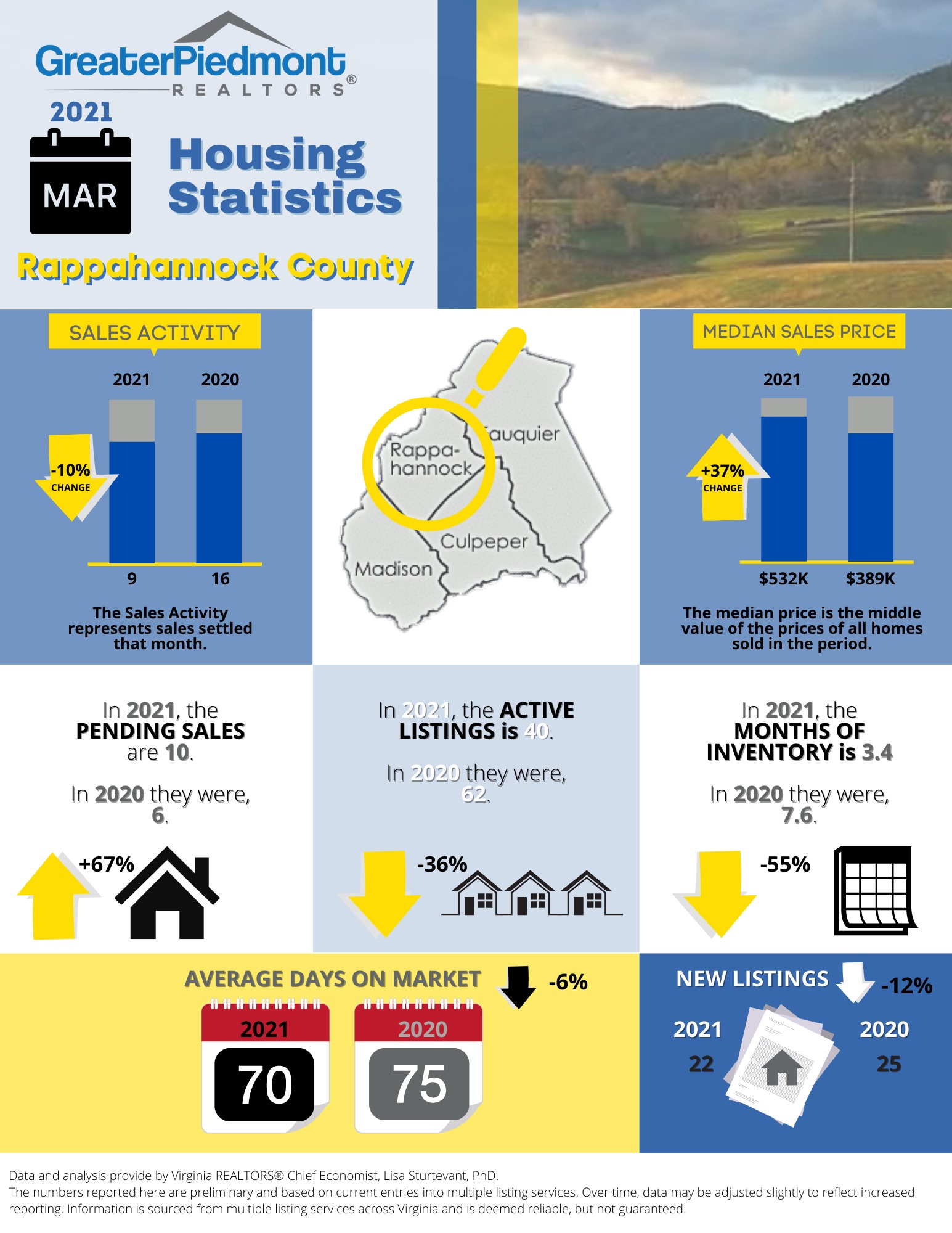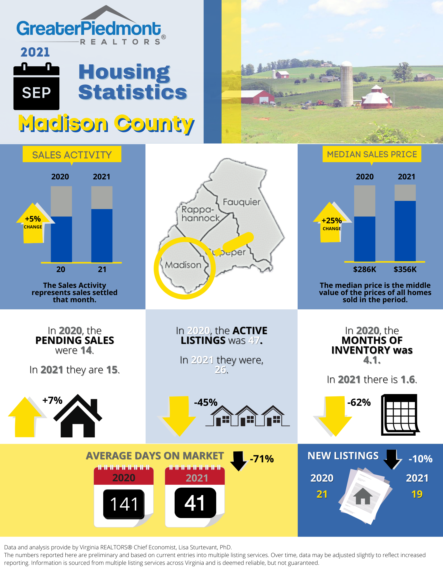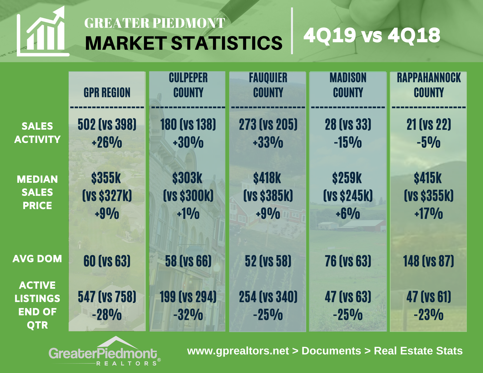 The Greater Piedmont REALTORS® reports on the sales activities for the counties of Culpeper, Fauquier, Madison and Rappahannock.