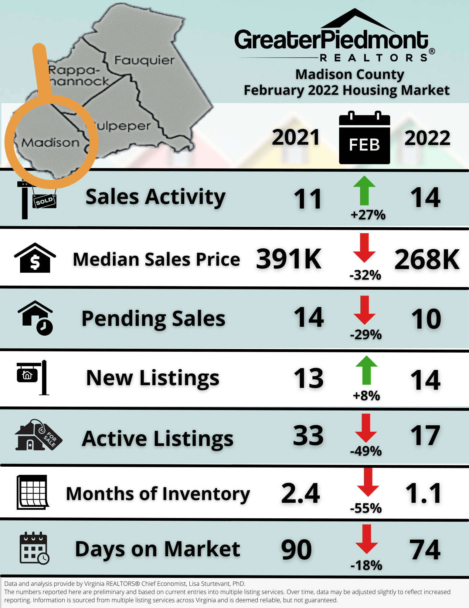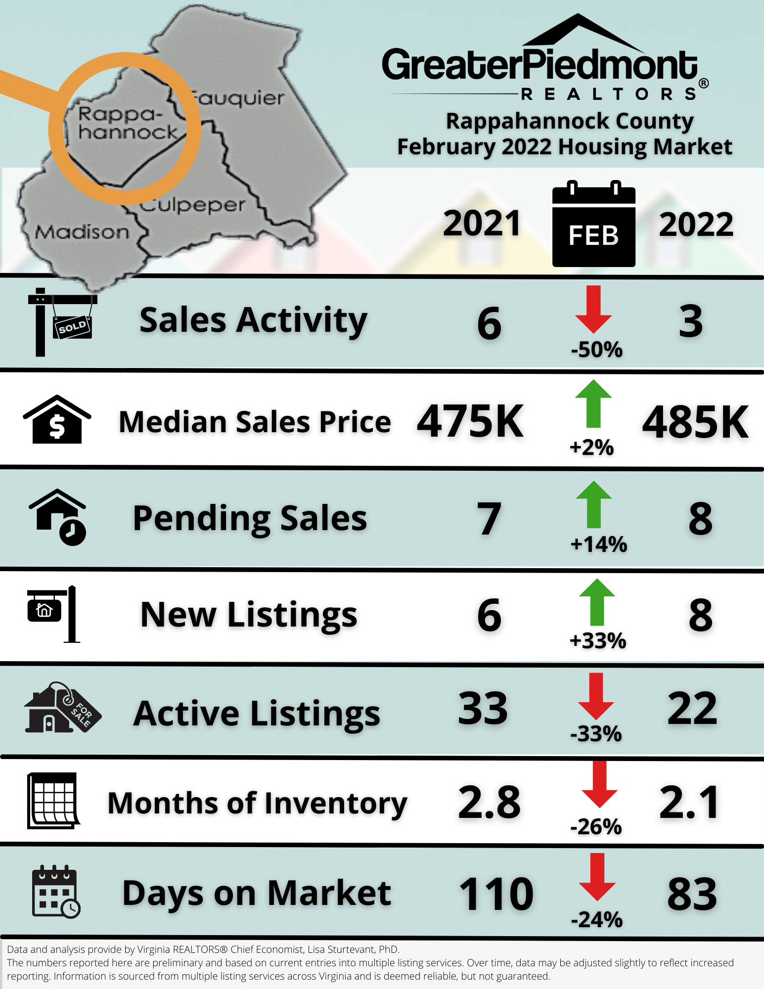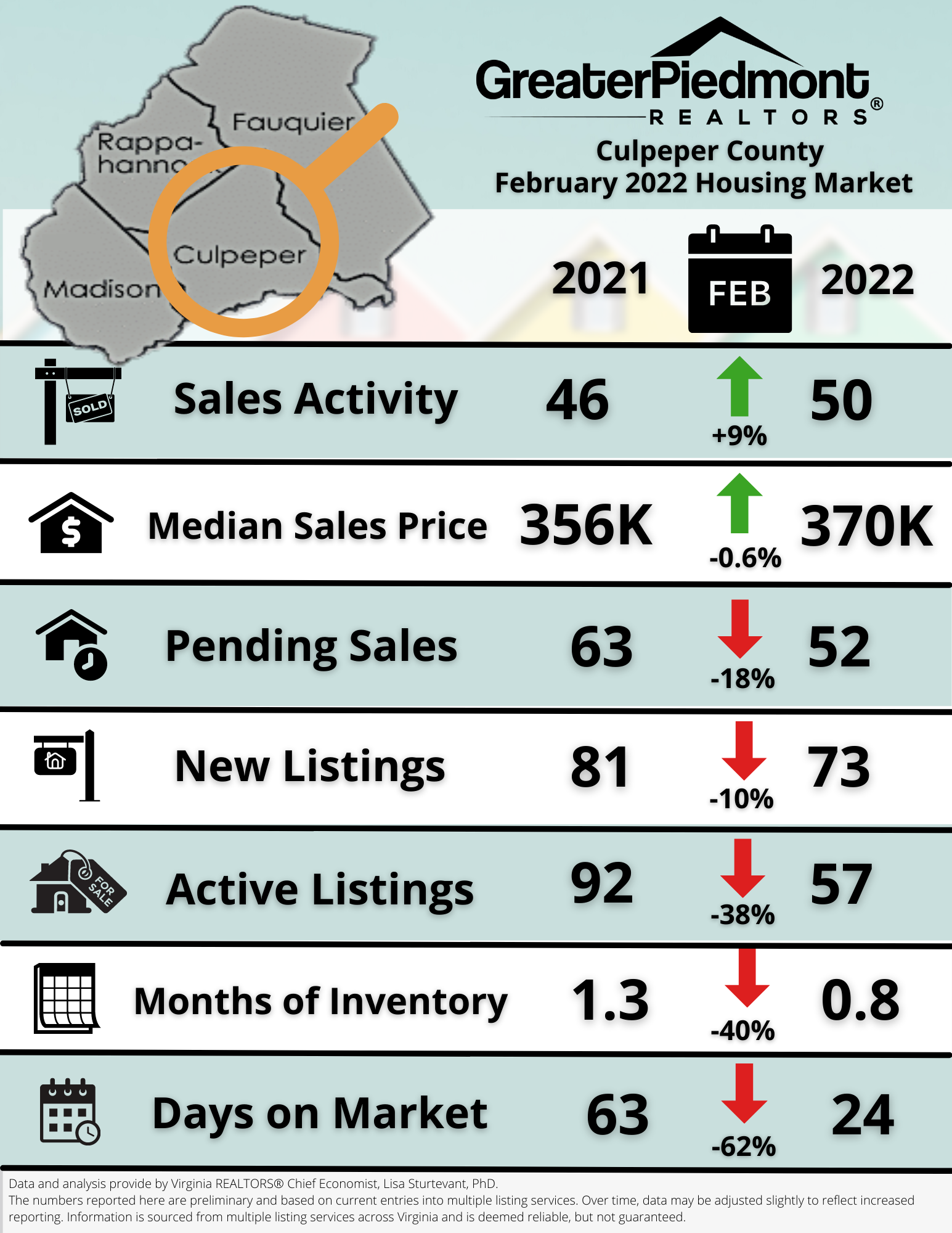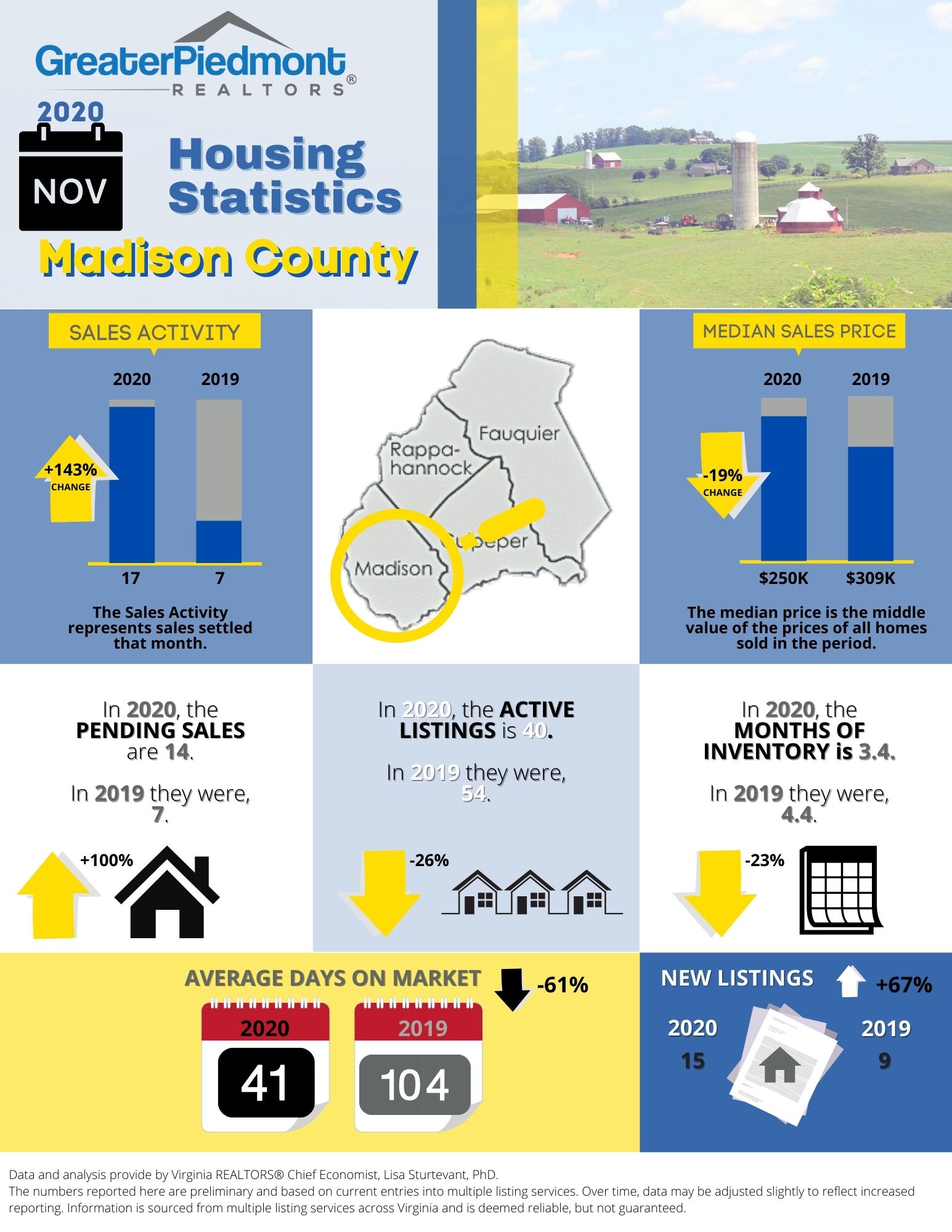 The Greater Piedmont REALTORS® reports on the sales activities for the counties of Culpeper, Fauquier, Madison and Rappahannock.